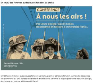 Venez assister à cette conférence sur la première association française de femmes pilotes “La Stella” , l’époque de leurs combats pour voler et faire du sport…